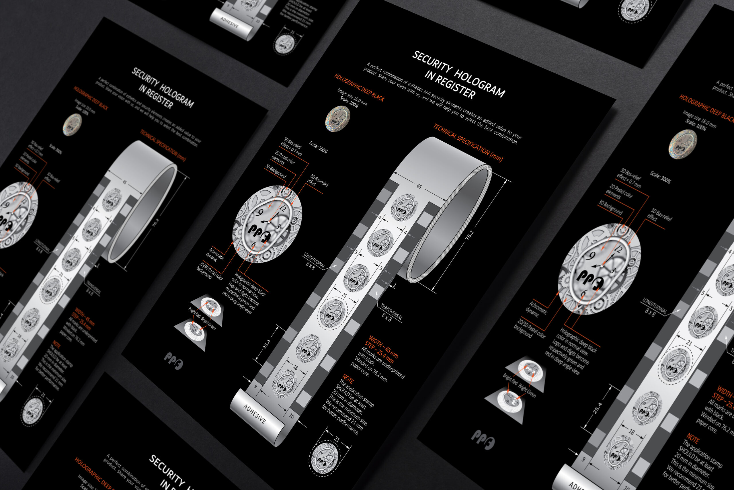 As to design, transparent holographic images look very catchy on contrasting dark backgrounds. Another sure winner is metallized basis and a transparent holographic image in spaces without white liner.